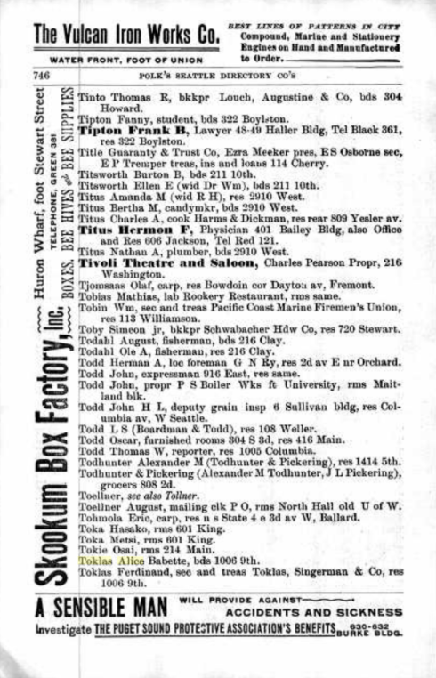Alice B Toklas was born in San Francisco in 1877, but her family moved to Seattle in 1890 and she would grow up there, attending University of Washington, until 1897 when she would move back to San Francisco to care for her ill mother. This puts Alice in Seattle during some of her most formative years, from ages 13-20. It’s said that perhaps why she haunts the halls of Sorrento despite likely never even having stepped foot in the hotel, was because this may have been some of the fondest times and memories for her.